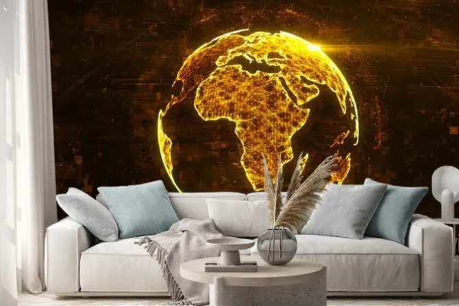 Naklejka: Cyfrowe streszczenie świecie wykonane z linii świecące splotu.