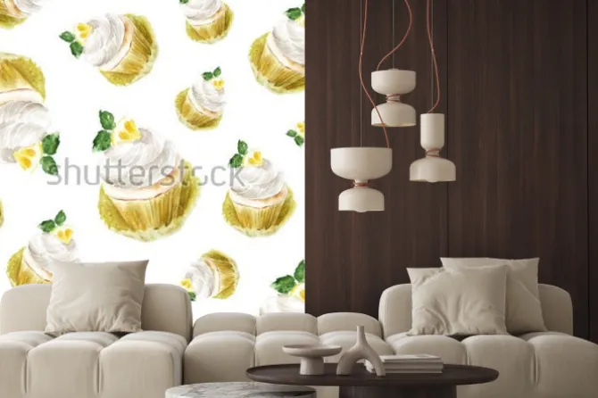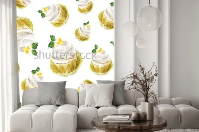 Naklejka: Cytryny babeczka z kremową mennicą, akwareli ilustracyjny słodka
