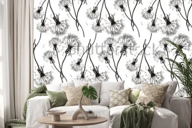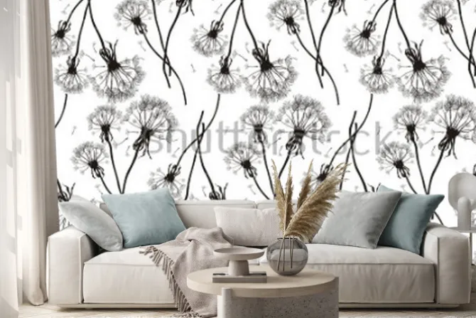 Naklejka: Czarna dandelions bezszwowa tekstura