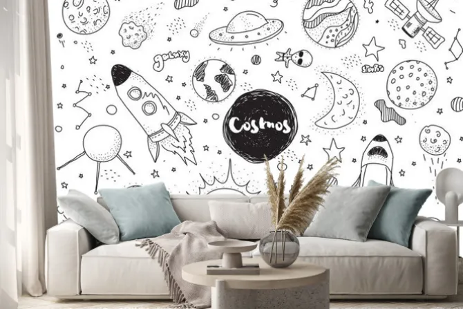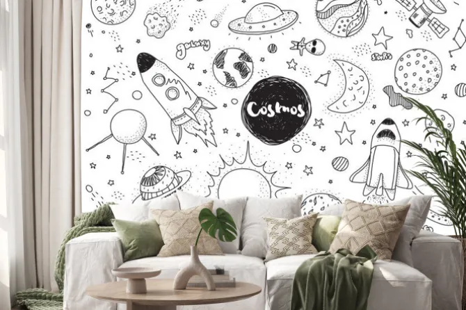 Naklejka: Czarno-białe symbole kosmosu dla dzieci