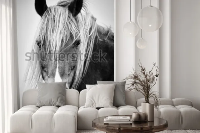 Naklejka: Czarno-biały portret konia