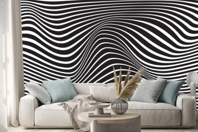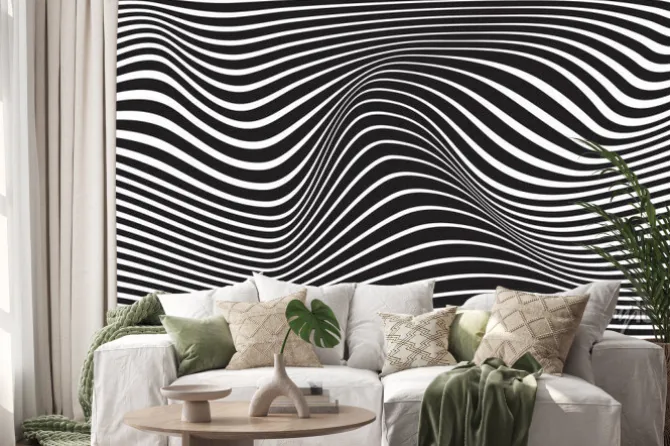 Naklejka: Czarno-biały wzór 3d z falującymi liniami