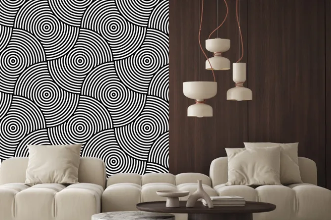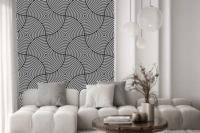 Naklejka: Czarno-biały wzór psychodeliczny circular tekstylne.