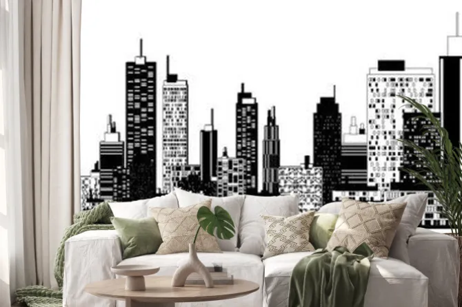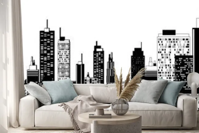 Naklejka: Czarno-białych ilustracji panoramę miasta.