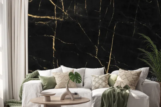 Naklejka: Czarny marmur ze złotymi akcentami