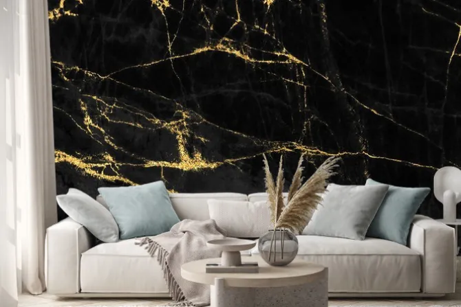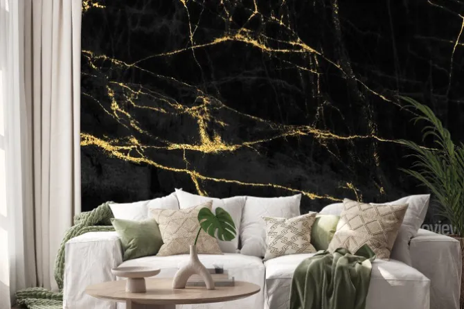 Czarny marmur ze złotymi zdobieniami.