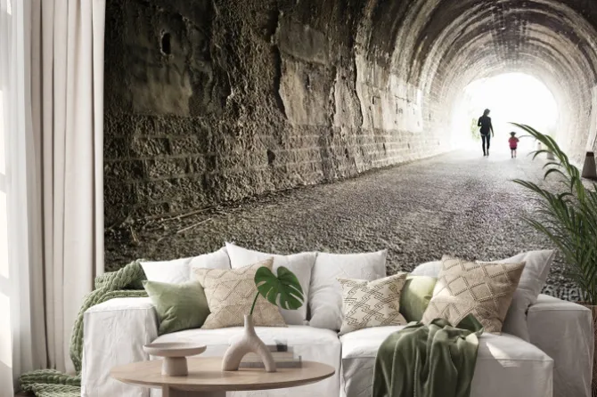 Naklejka: Czarny tunel, matka i córka cienie