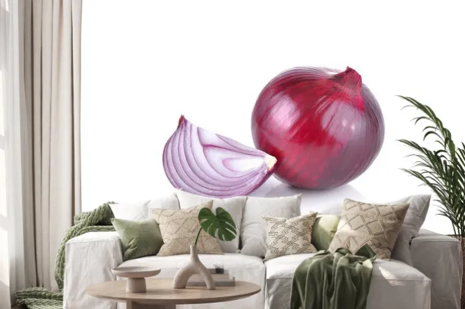 Naklejka: Czerwona cebula na białym tle