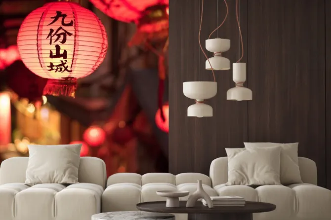 Czerwone chińskie lampiony w nocy w Jiufen, Tajwan.