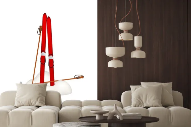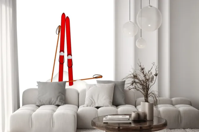 Naklejka: Czerwone narty wbite w śnieg
