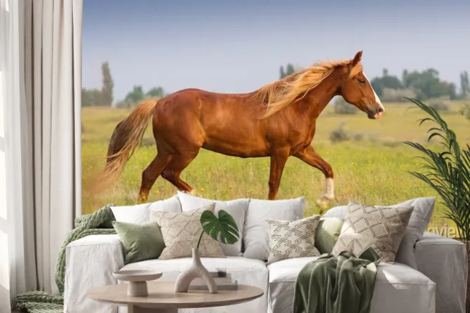 Naklejka: Czerwony koń z długą grzywą