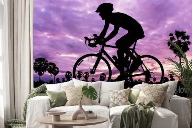 Naklejka: Człowiek na rowerze na zmierzchu czasie