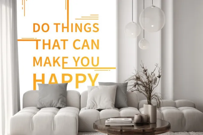 Naklejka: Czy rzeczy, które mogą cię uszczęśliwić. inspirująca powiedzenie.