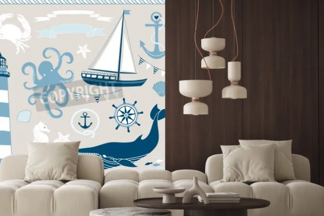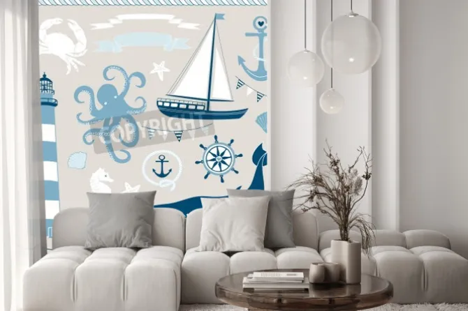 Naklejka: Dekoracyjne żeglarskie i set sea, morskie ilustracje