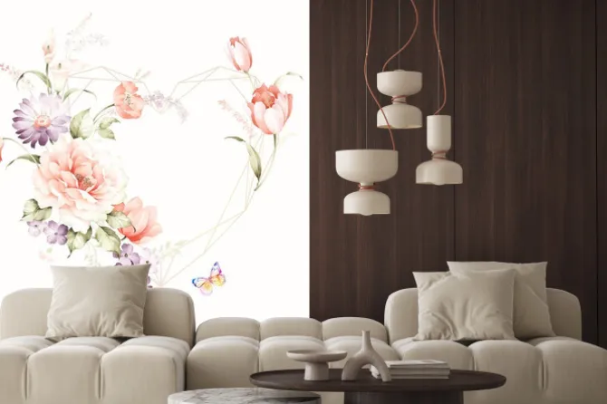 Delikatne geometryczne serce i pastelowe kwiaty.