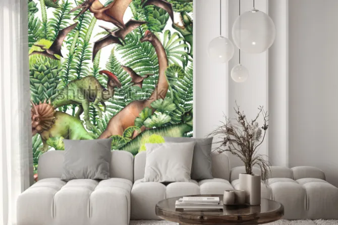 Naklejka: Dinozaury wśród prehistorycznych roślin