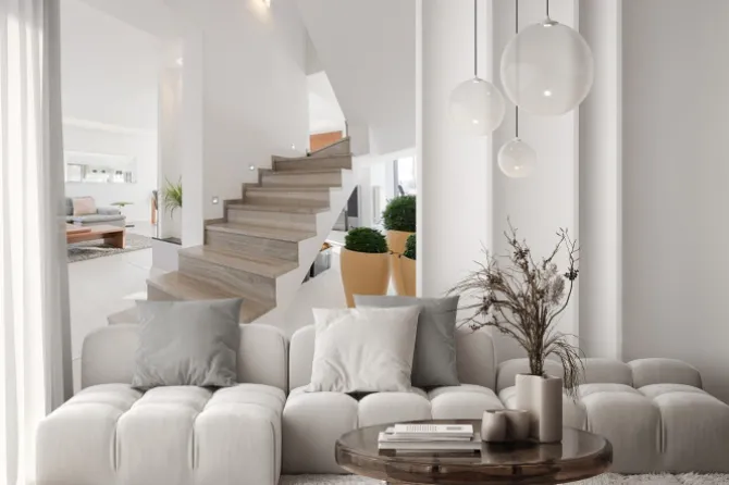 korytarz, schody, marmur, kwiaty, dekoracyjne, biały