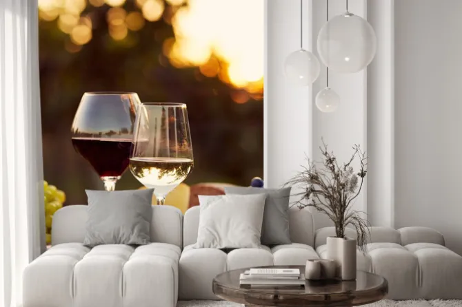 Naklejka: Dwa kieliszki do białego i czerwonego wina