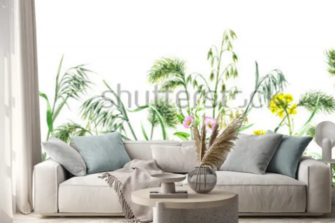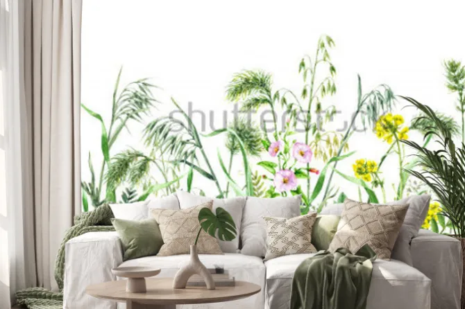 Naklejka: Dzikie zioła i kwiaty w stylu akwareli na białym tle