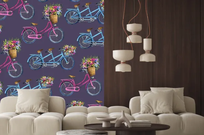 Naklejka: Eamless wzór z rowerami i kwiatami