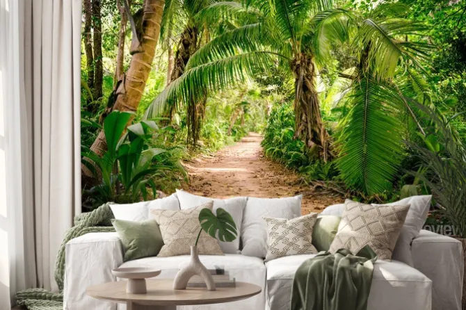 Naklejka: Egzotyczna tropikalna ścieżka wśród palm