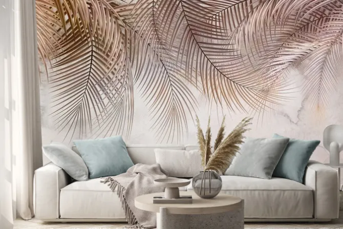 Naklejka: Egzotyczne liście palm na beżowym tle