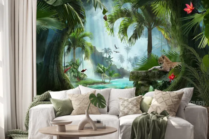 Naklejka: Egzotyczne zwierzęta tropikalnej dżungli