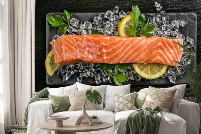 Naklejka: Filet z łososia podany na czarnym kamieniu