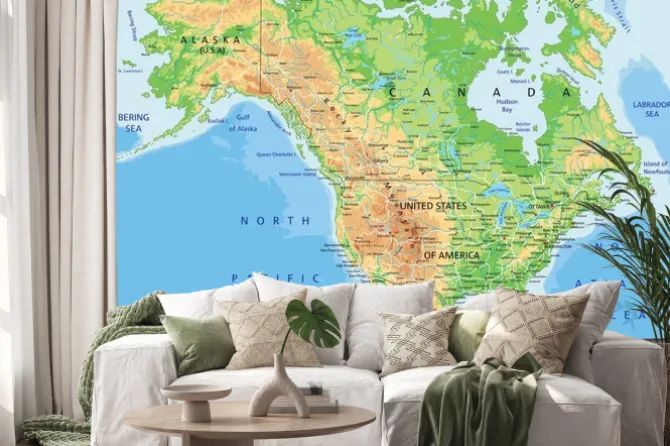 Naklejka: Fizyczna mapa ameryki północnej z nazwami