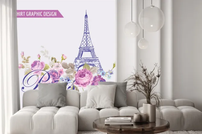Naklejka: Floral paris graphic design – dla koszulki, moda, grafika