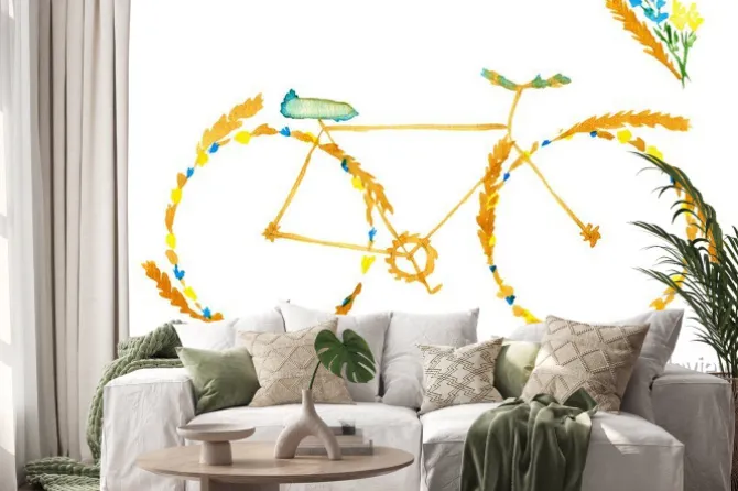 Naklejka: Flower spring summer bike. hand drawn watercolor illustration