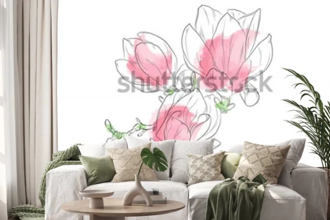Naklejka: Gałązka różowych magnolii w stylu akwareli