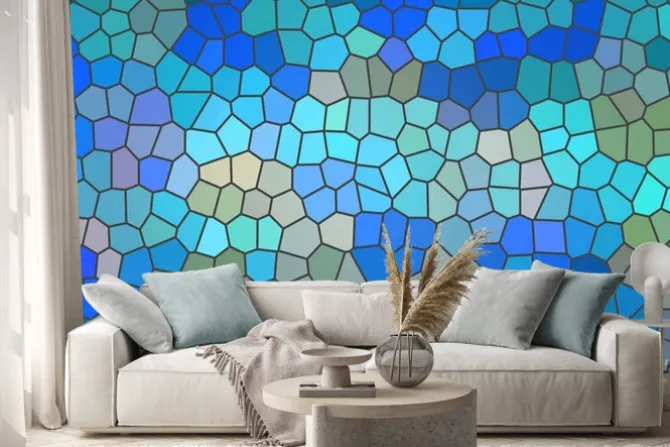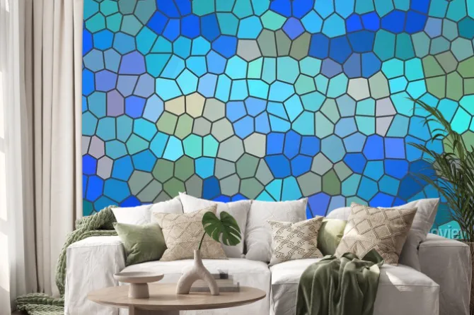 Naklejka: Geometryczny niebieski witraż
