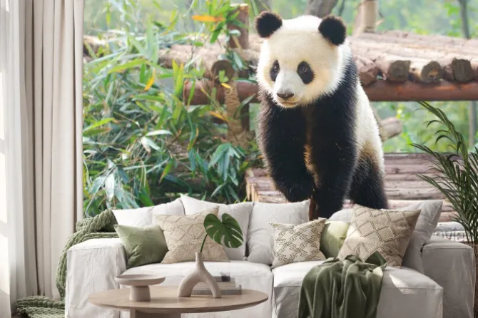 Naklejka: Giant panda zaciekawieniem stojąca, chengdu, syczuan, chiny
