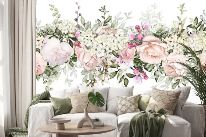 Naklejka: Girlanda kwiatowa w stylu malarskim