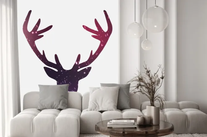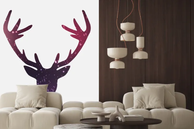 Naklejka: Głowa jelenia, galaktyk i mgławic tle