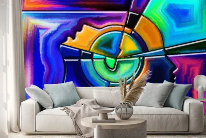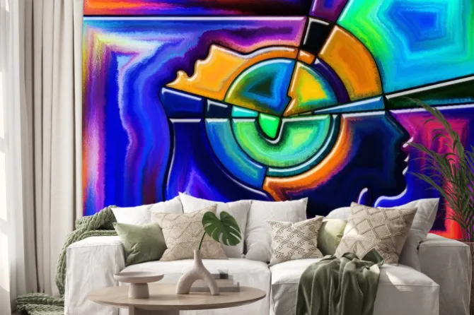 Naklejka: Głowy na abstrakcyjnej kompozycji