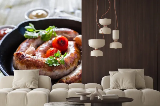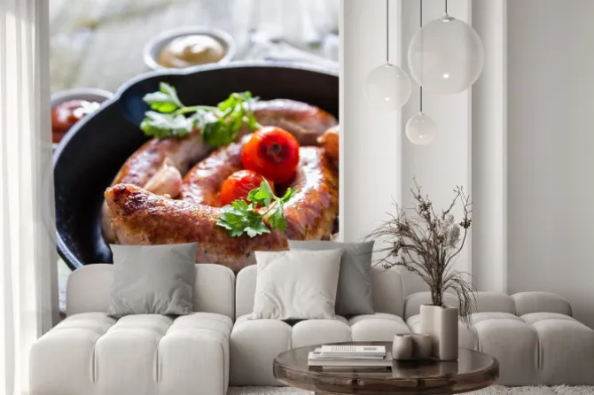 Naklejka: Grillowane kiełbaski na patelnię z ziołami i przyprawami