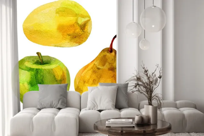 gruszki, jabłka, natura, zieleń, owoce, żółty