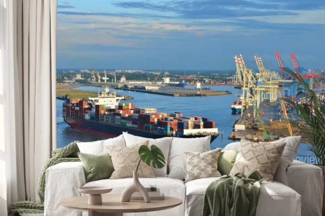 Naklejka: Hamburger hafen, containerschiff, kontenerowy, schlepper, vorhafen,