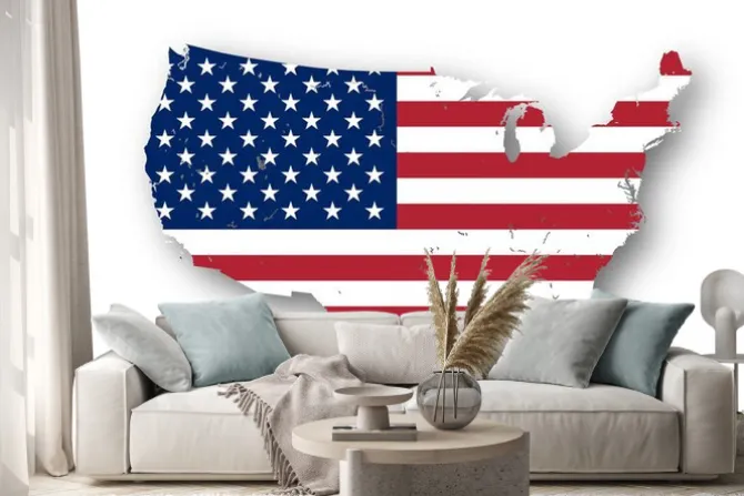 Naklejka: High resolution map of the usa with american flag. you can easily