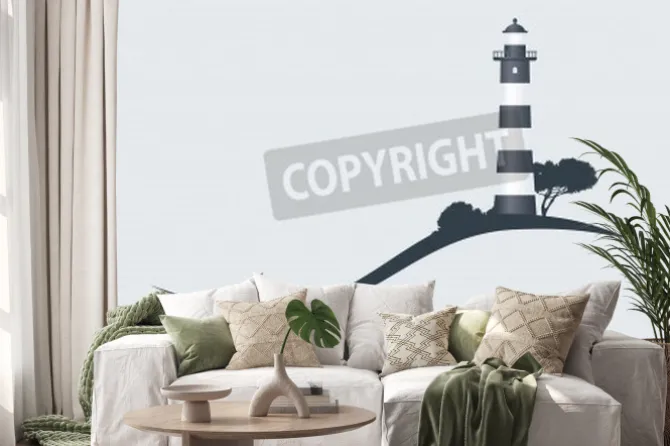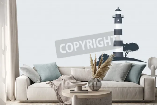 Naklejka: Hillside black striped lighthouse vector illustration