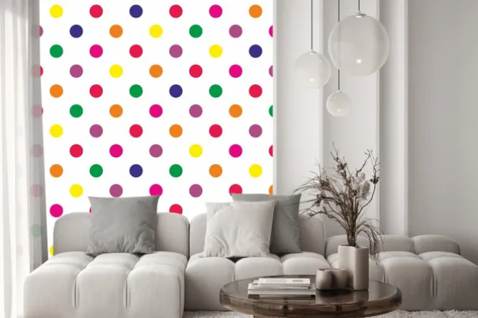 kropki, dekoracyjne, zieleń, biały, retro, różowy, żółty, czerwony