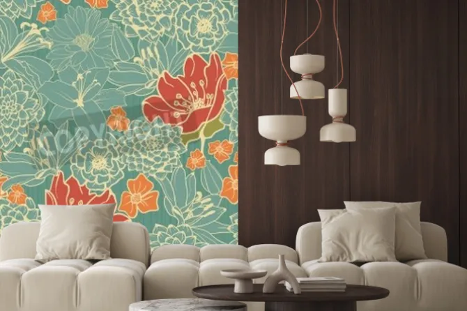 Naklejka: Ilustracja z pomarańczowymi czerwonymi i przezroczystymi kwiatami