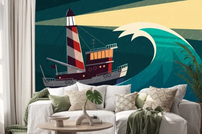 latarnie, morze, statki, retro