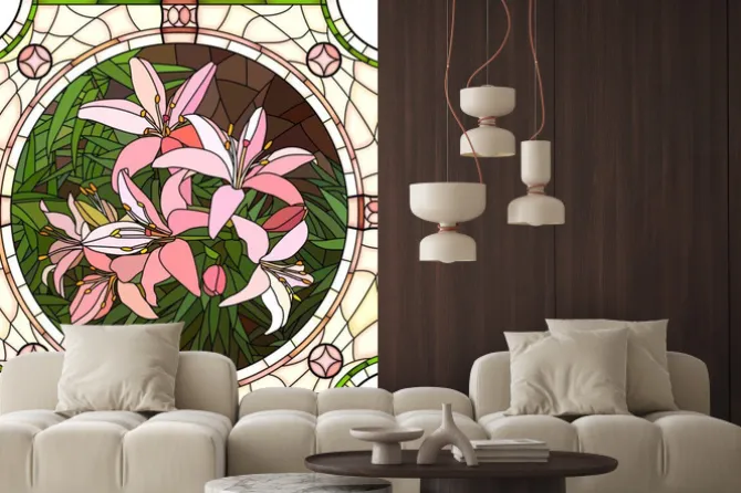 witrażowe, okna, ornament, mozaika, kwiaty, zieleń, flora, style