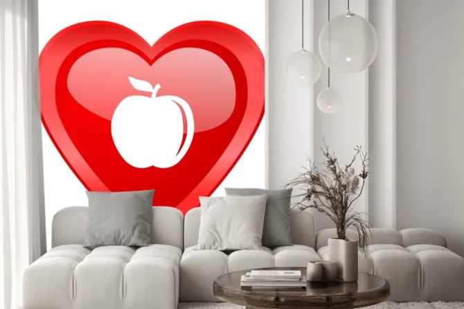 Naklejka: Jabłko czerwone serce valentine błyszczący web icon