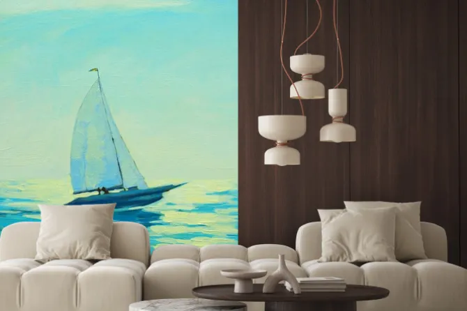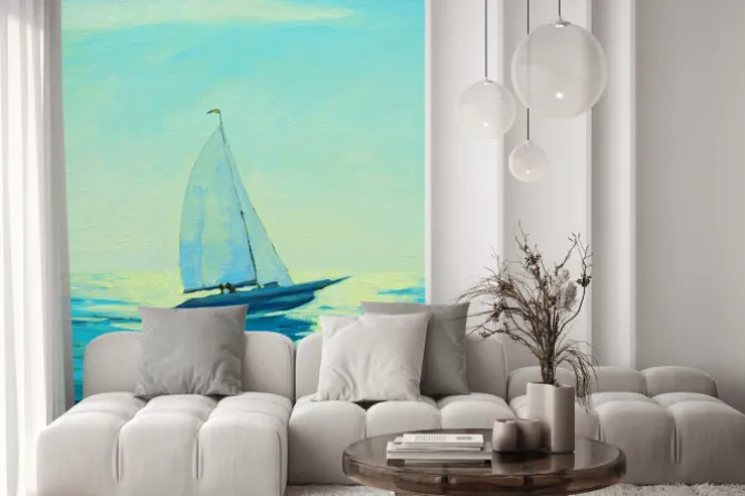 Naklejka: Jacht z żaglem w porannym morzem śródziemnym, malowanie