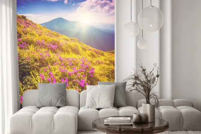 krajobrazy, niebo, trawa, łąka, kwiaty, góry, flora