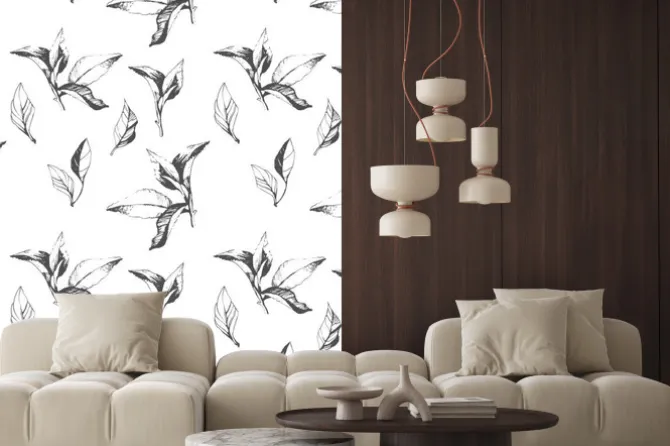 Naklejka: Jednolite tło z liści. szkic stylu.